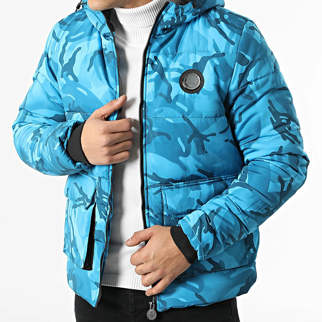 Bon marché 🥰 Doudoune Capuche Acine Bleu Clair Camouflage de Zelys Paris 🤩