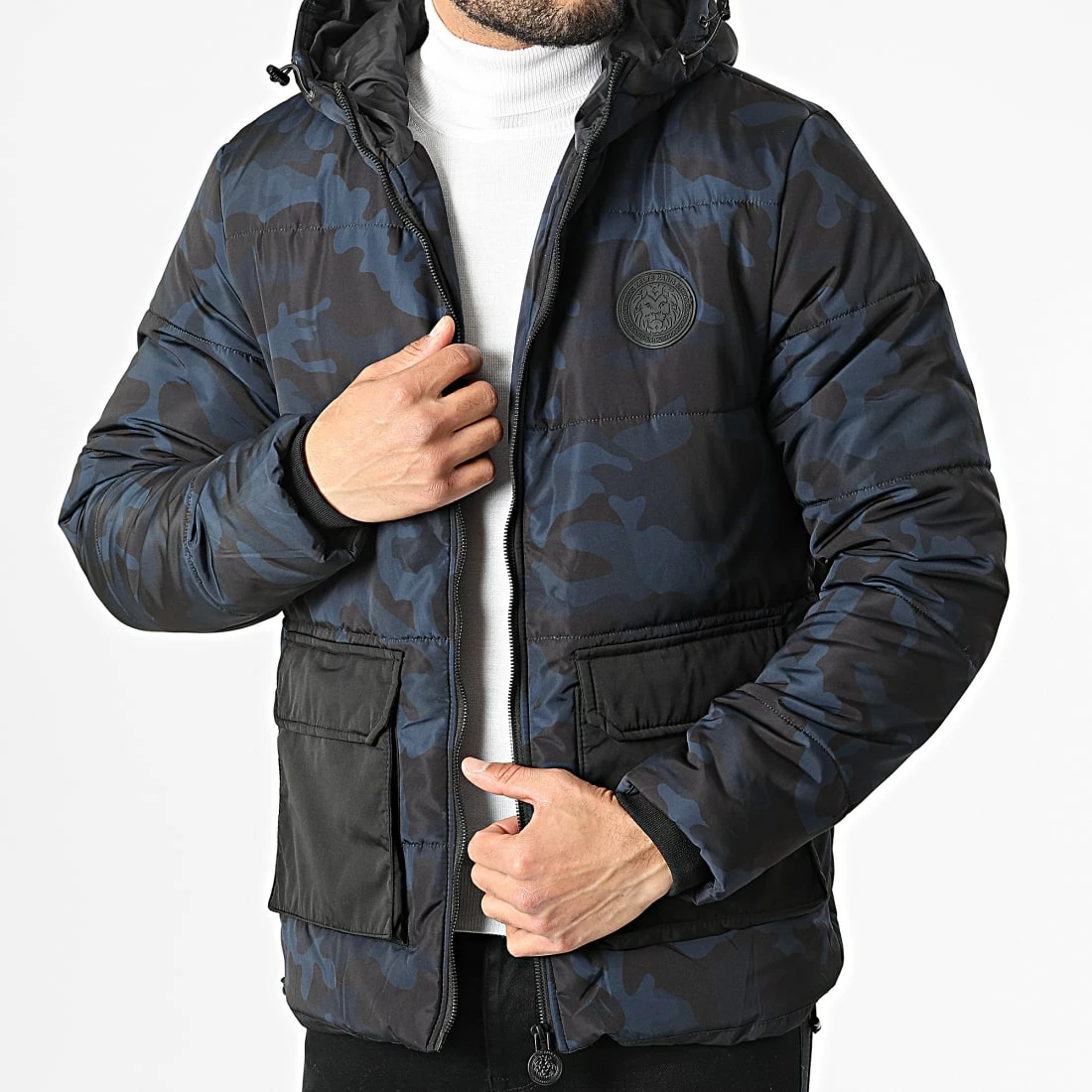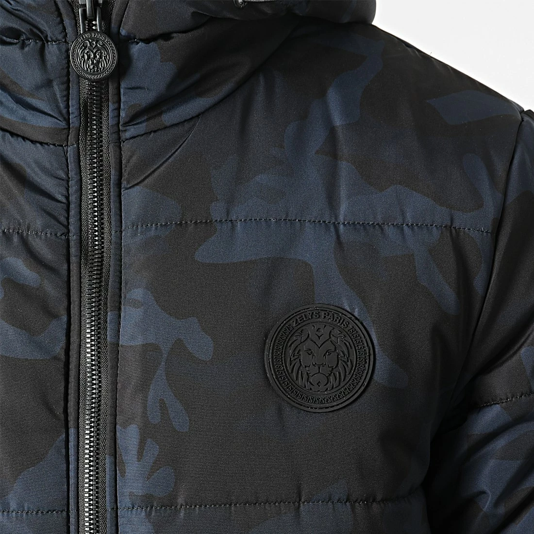 Meilleur prix 🛒 Doudoune Capuche Aros Bleu Marine Camouflage de Zelys Paris 🎉