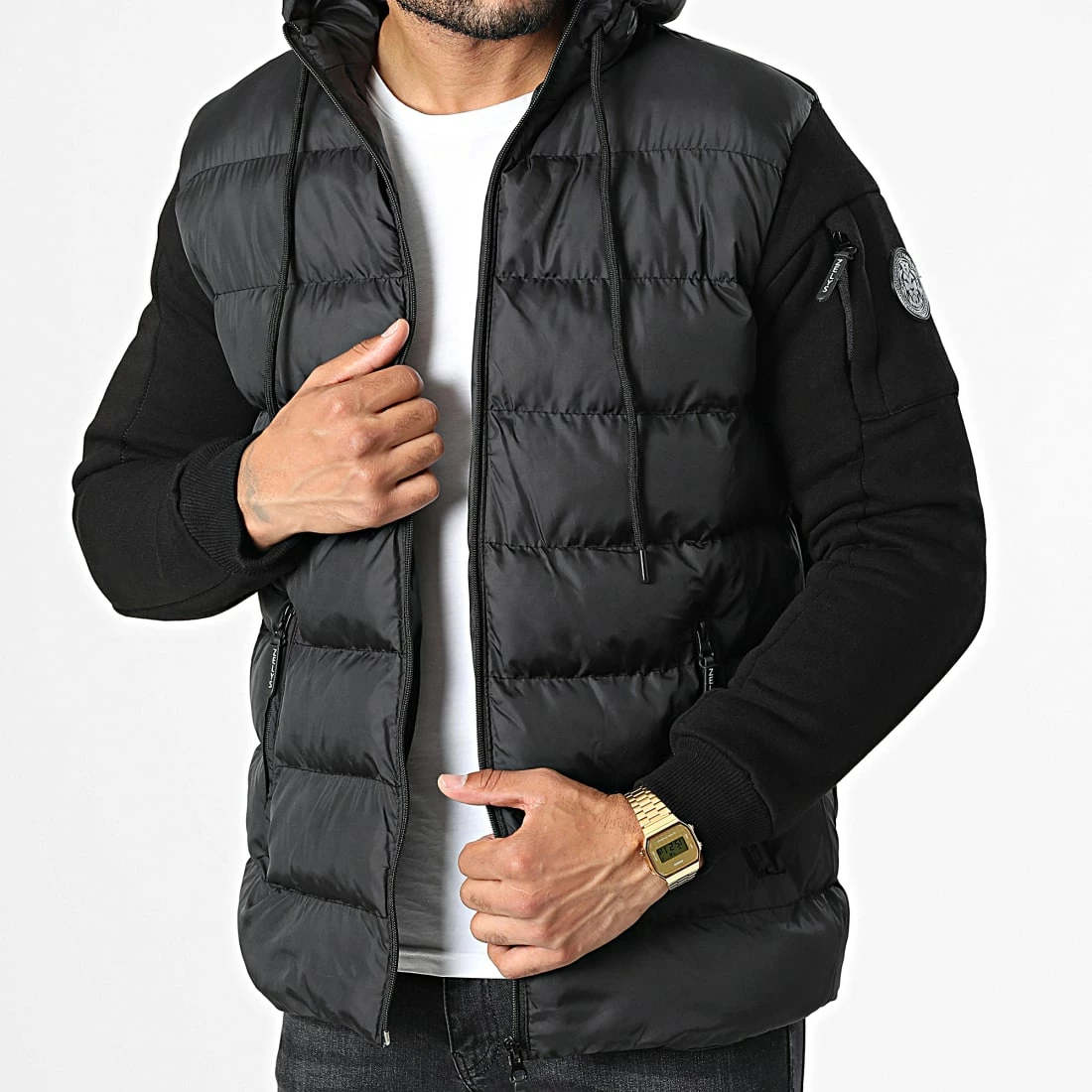 • Doudoune capuche chaude bi-matière avec patch Zelys à l’épaule