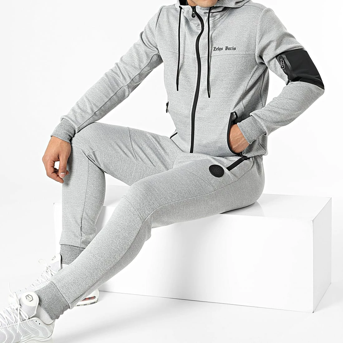 Offres 💯 Ensemble Sweat Zippé Capuche Et Pantalon Jogging Sekou Gris Chiné Réfléchissant de Zelys Paris 🔥