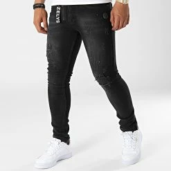 • Jean skinny finition tachée, usée et délavée avec rapiéçages