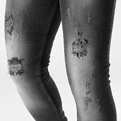 • Jean skinny finition délavée, tachée et usée avec rapiéçages