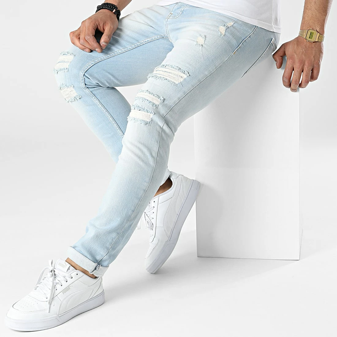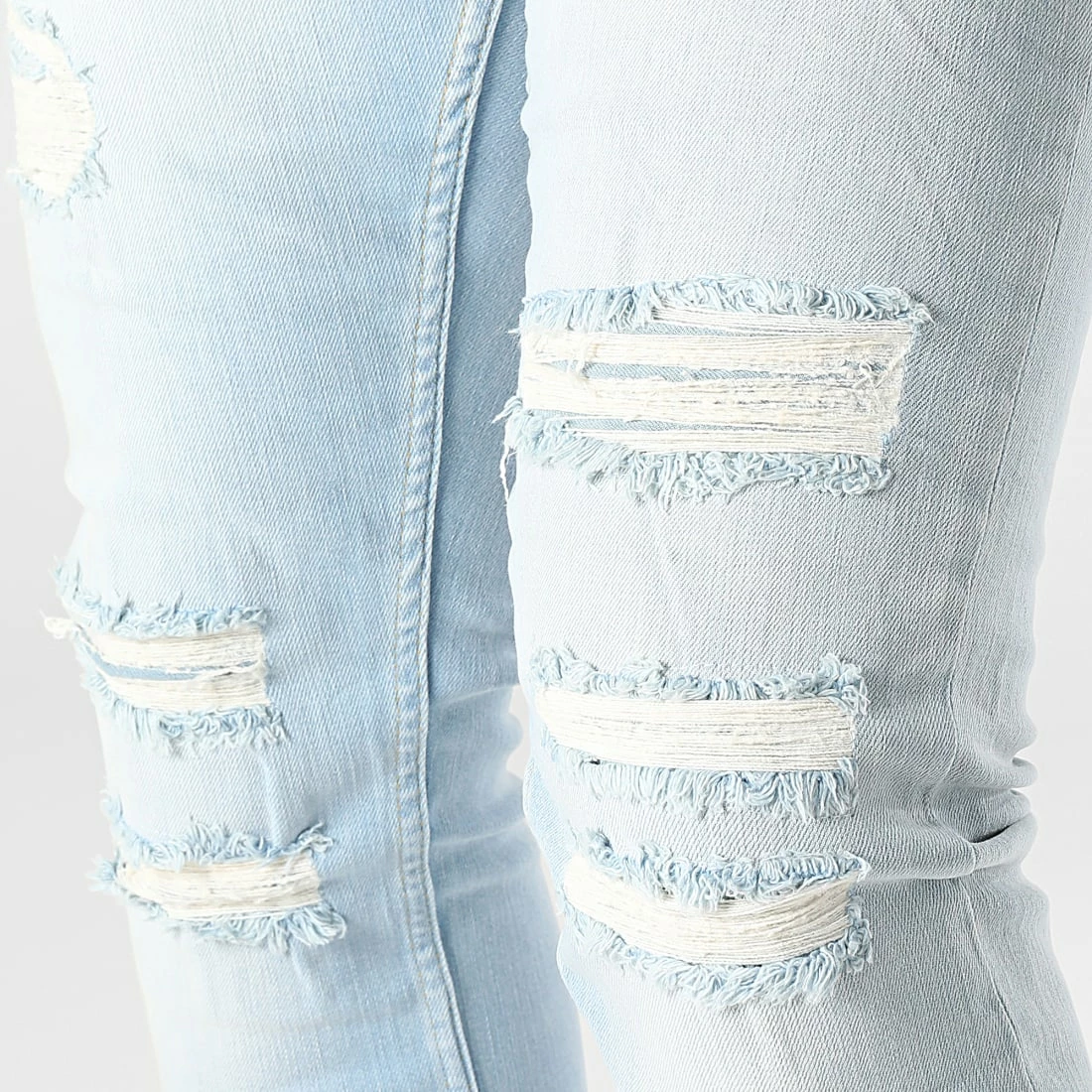 • Jean skinny tendance finition usée et délavée avec rapiéçages