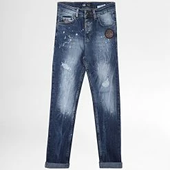 • Jean slim stretch à finition usée et délavée