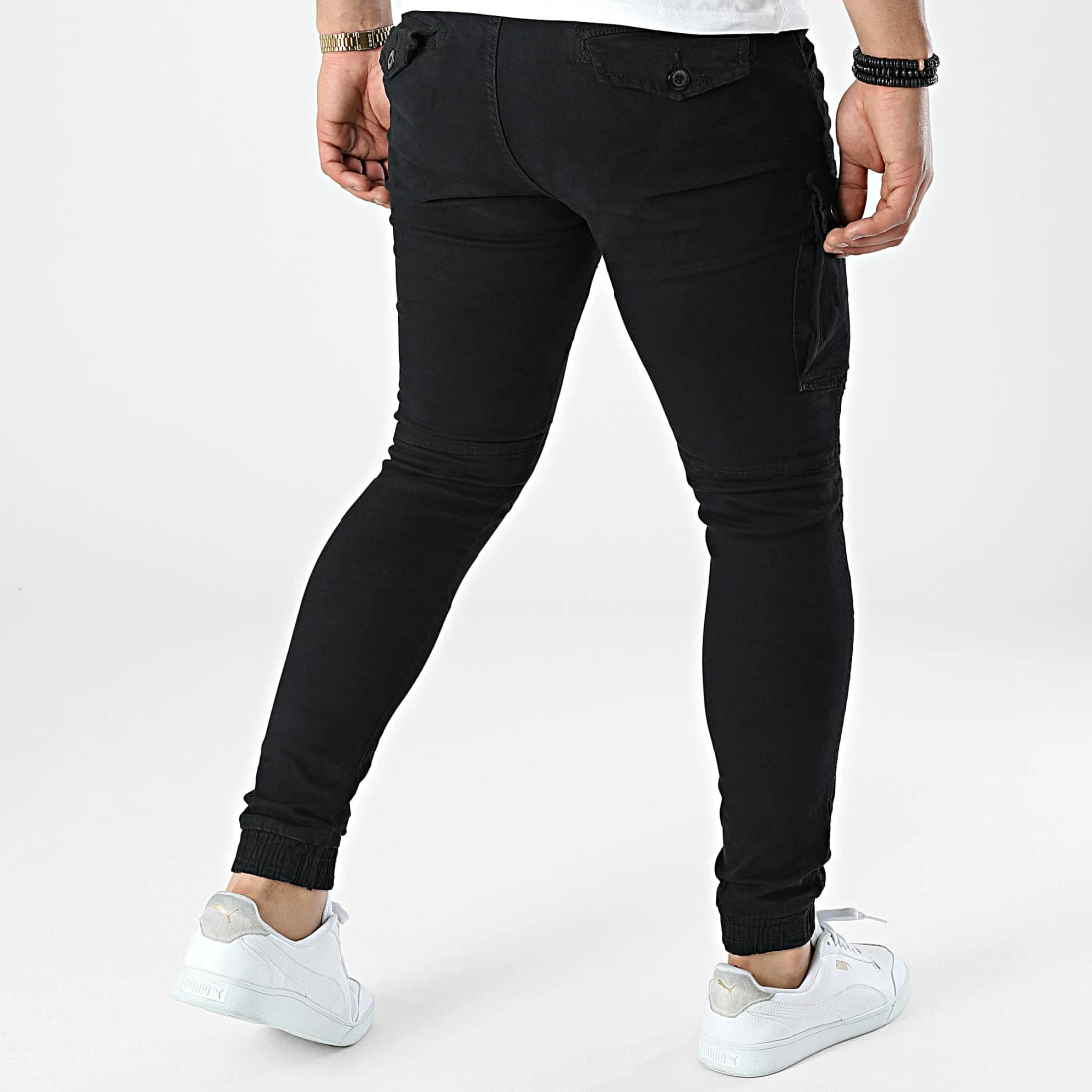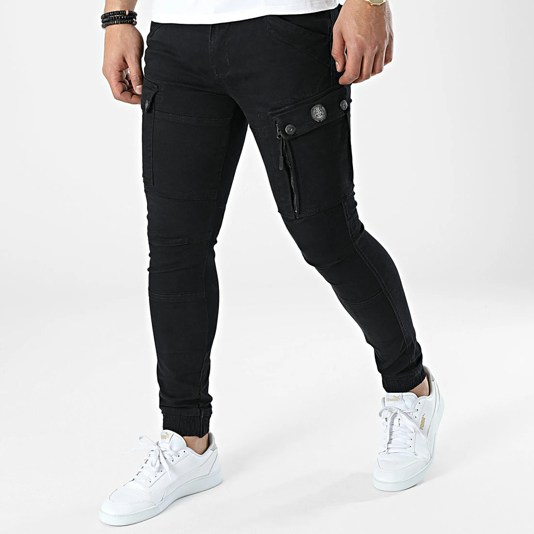 • Jogger pant en coton uni avec poches cargo boutonnées et zippées