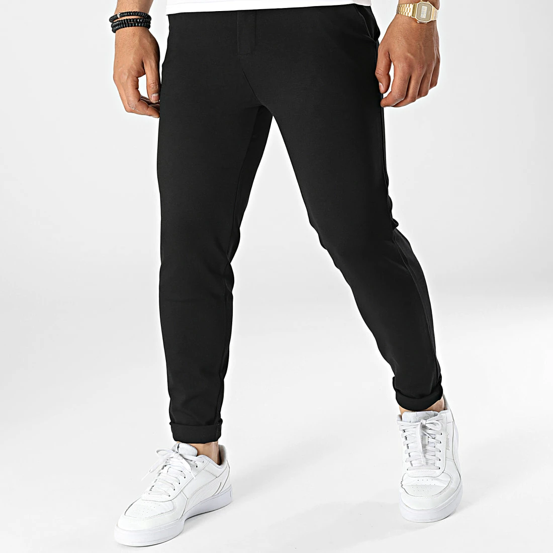 • Pantalon chino en tissu stretch uni