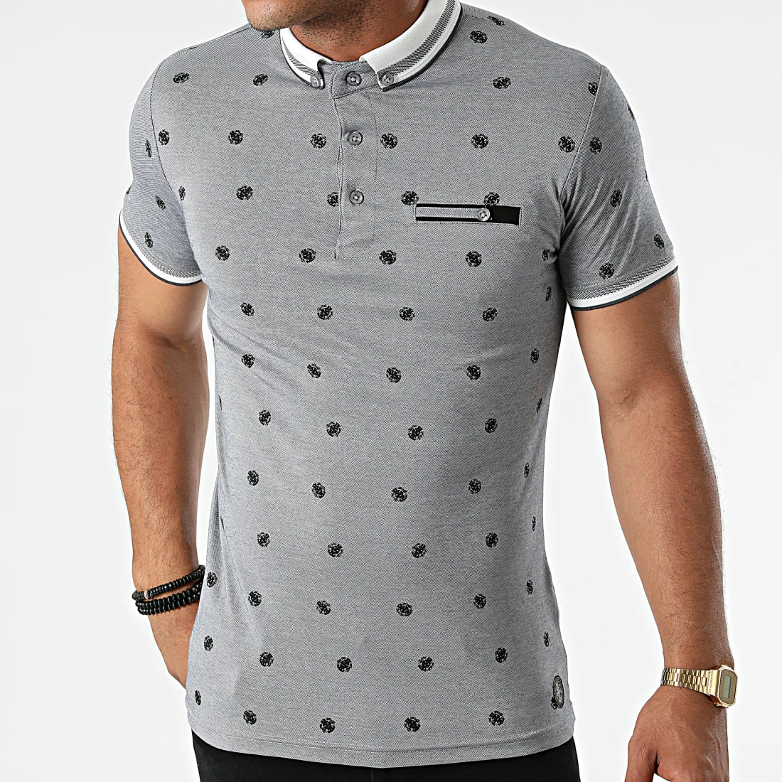 • Polo à manches courtes avec motif à logos Zelys brodé all over