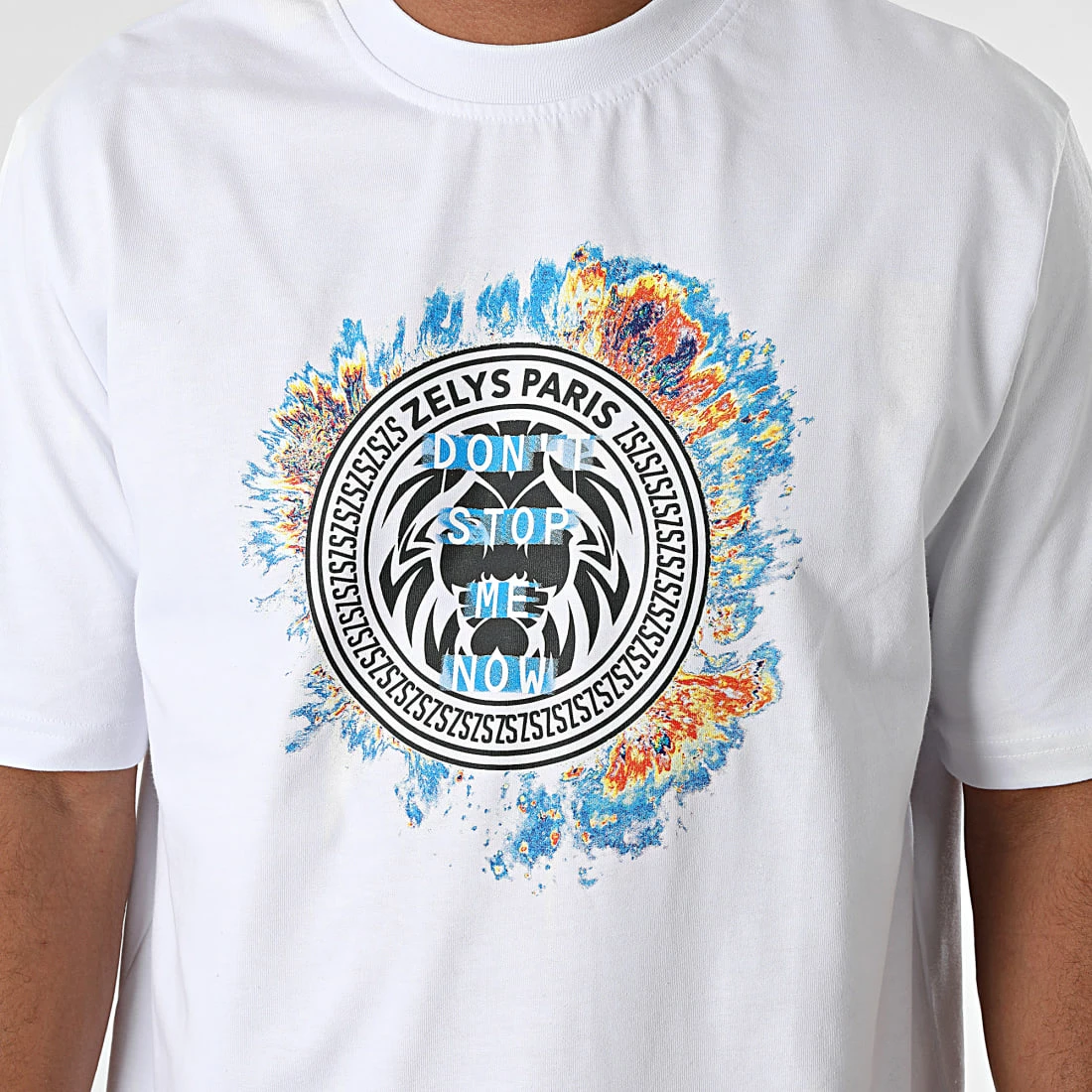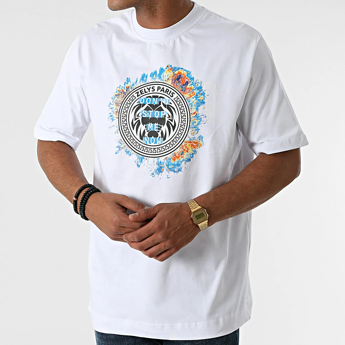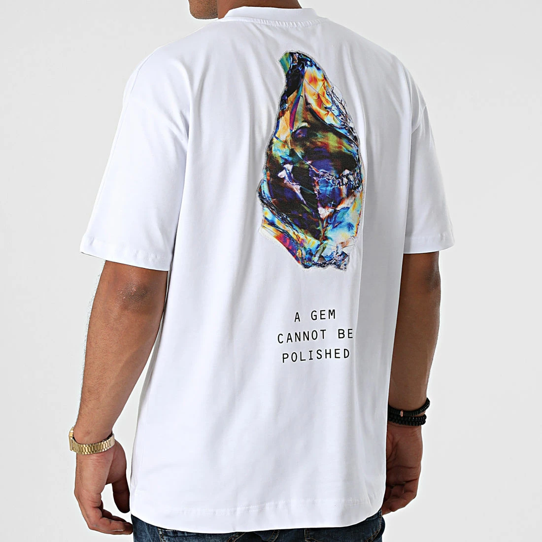• Tee shirt en coton stretch brodé et imprimé visuel à l’avant et au dos