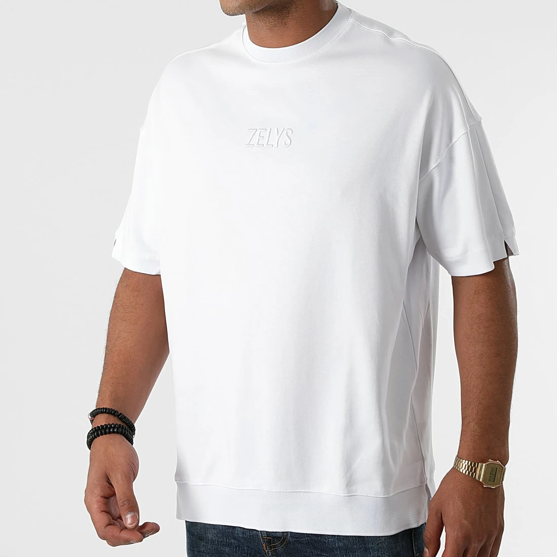 • Tee shirt en coton stretch brodé ton sur ton Zelys à l’avant