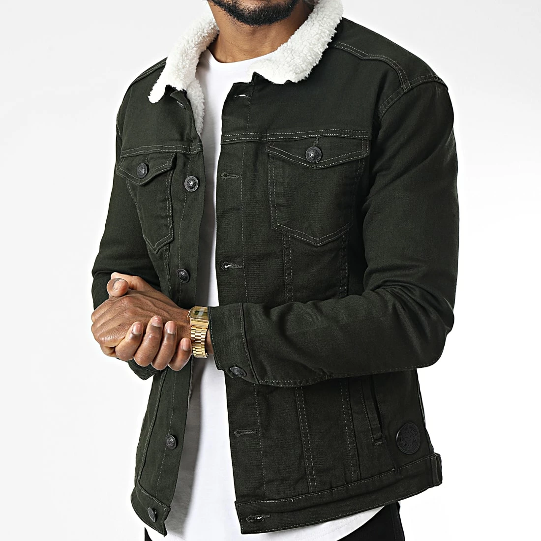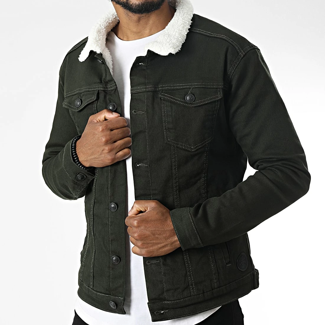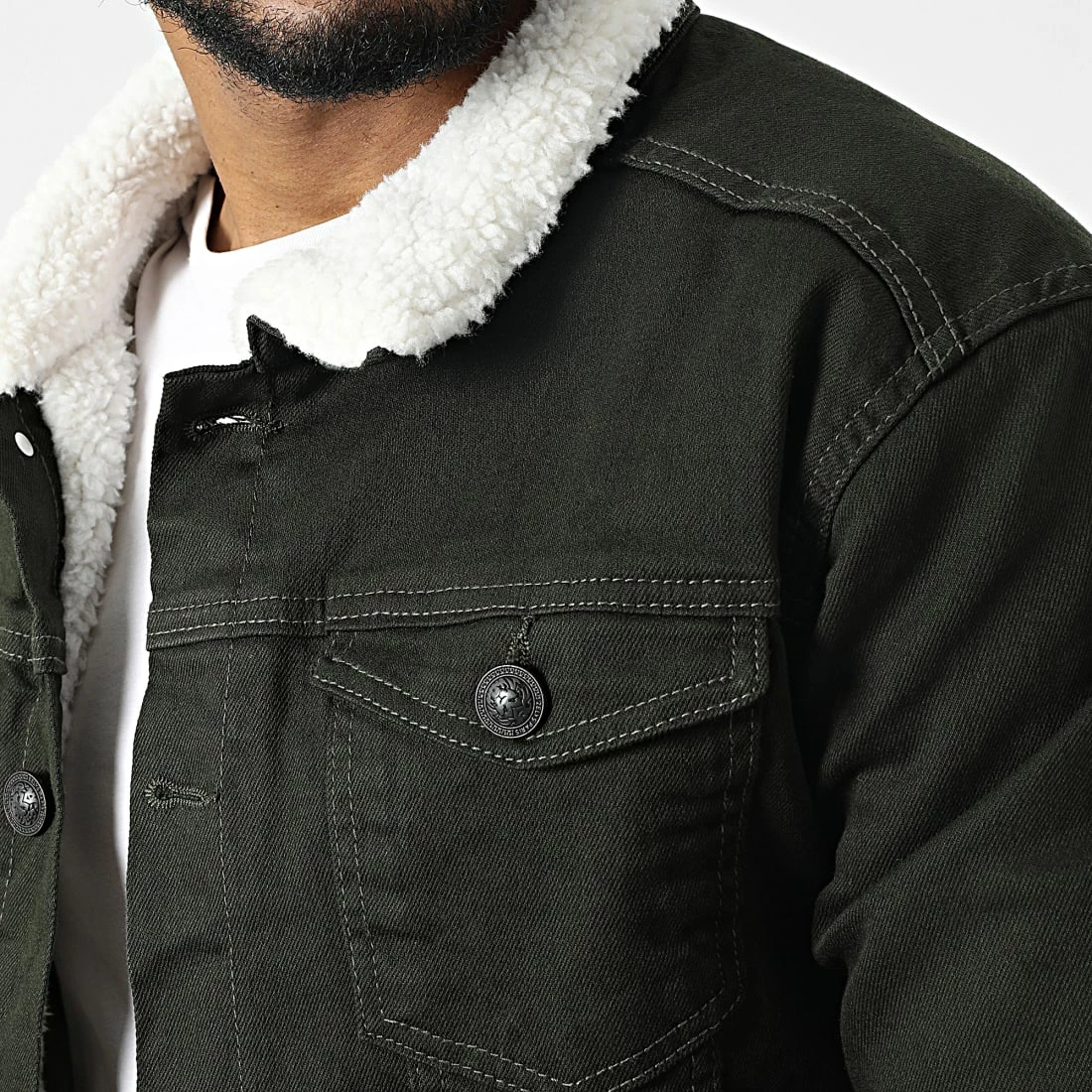 • Veste en jean avec col mouton en fourrure synthétique