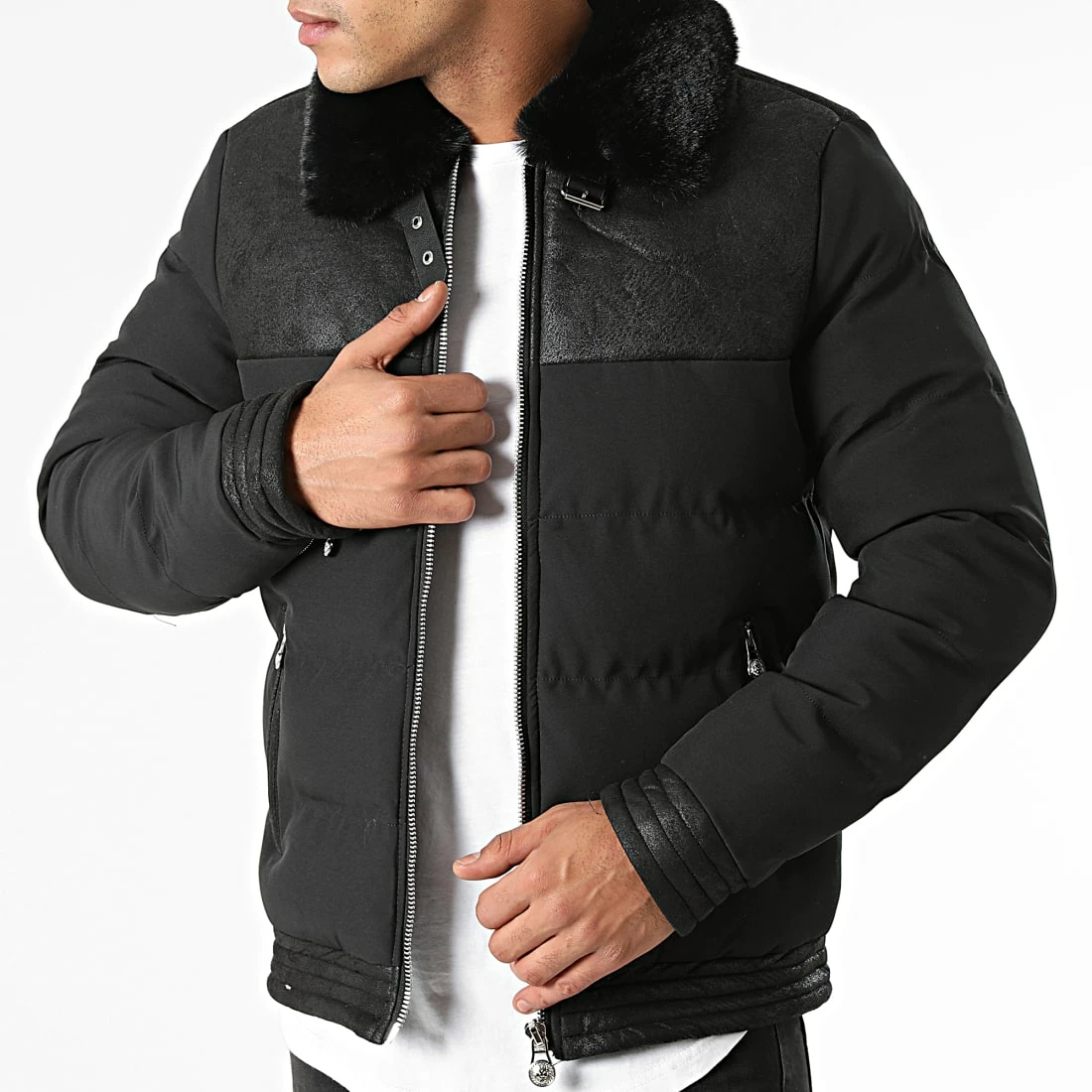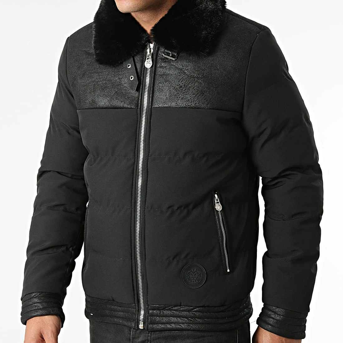 • Veste zippé tendance avec patch Zelys Paris brodé et col en fourrure synthétique